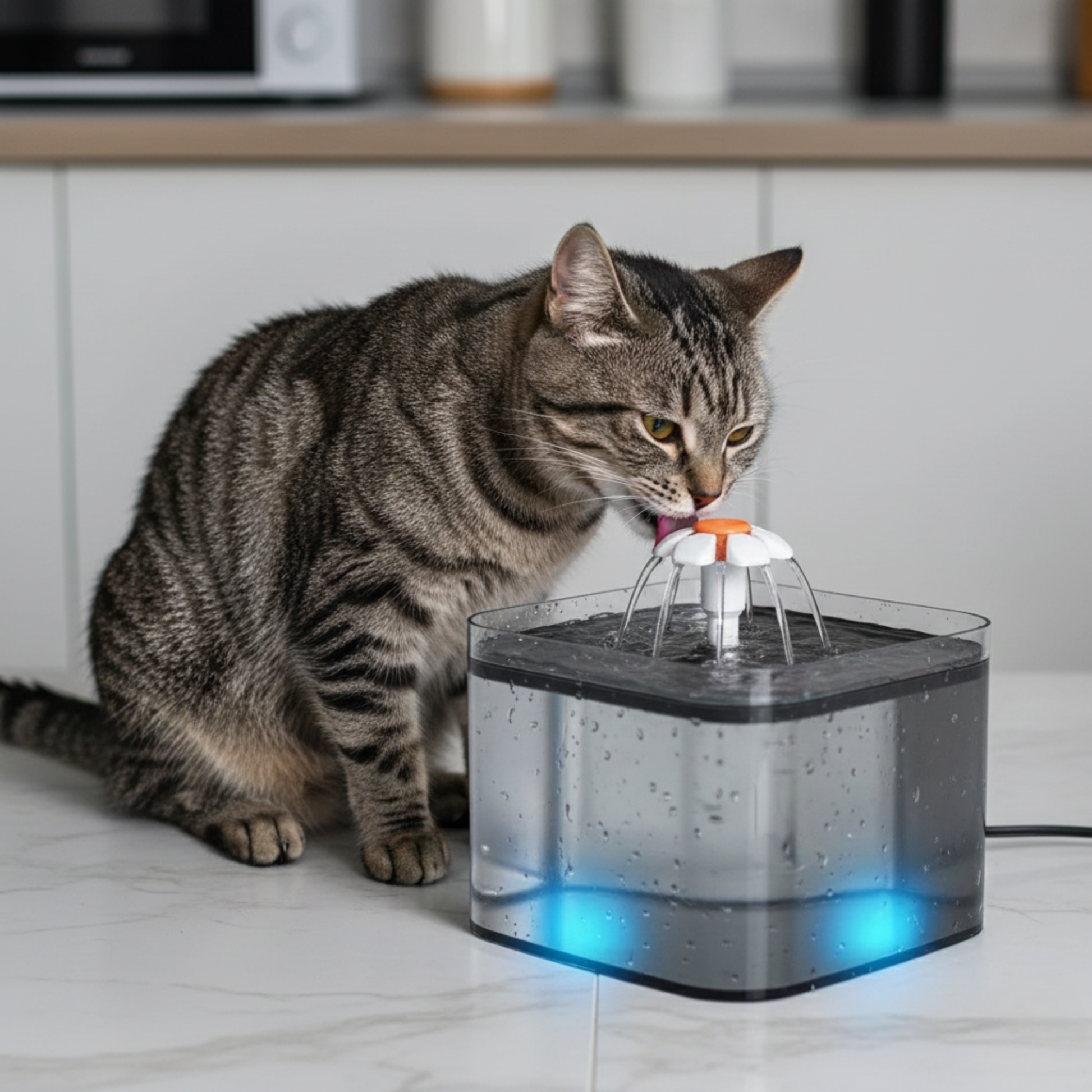 La fontaine à eau encourage votre animal à boire régulièrement grâce à une eau en mouvement, fraîche et propre.